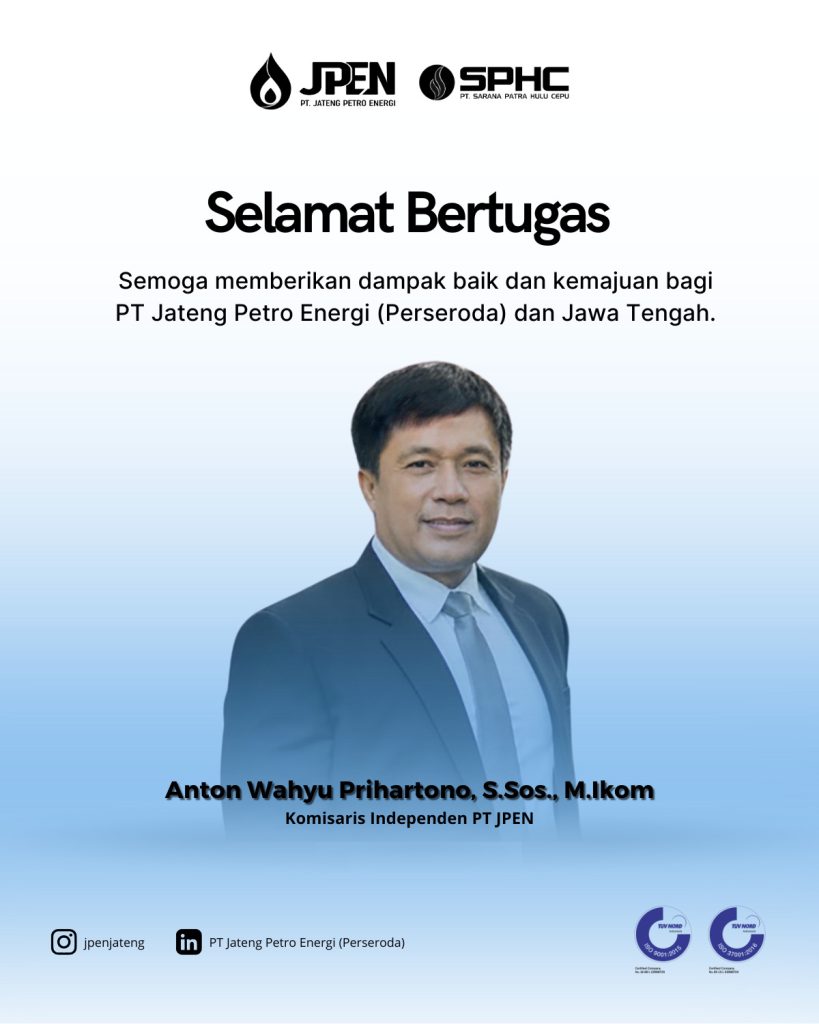 Selamat Bertugas kepada Bapak Anton Wahyu Prihartono, S.Sos., M.Ikom sebagai Komisaris Independen PT JPEN berdasarkan keputusan RUPSLB 10 Desember 2025.
